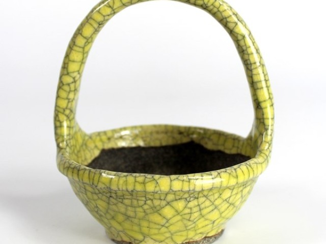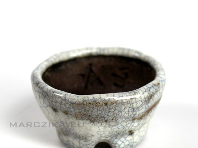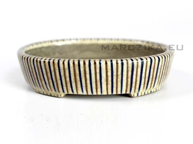 Satomi Terahata, shohin bonsai tál repesztett mázzal és csíkozott mintával |