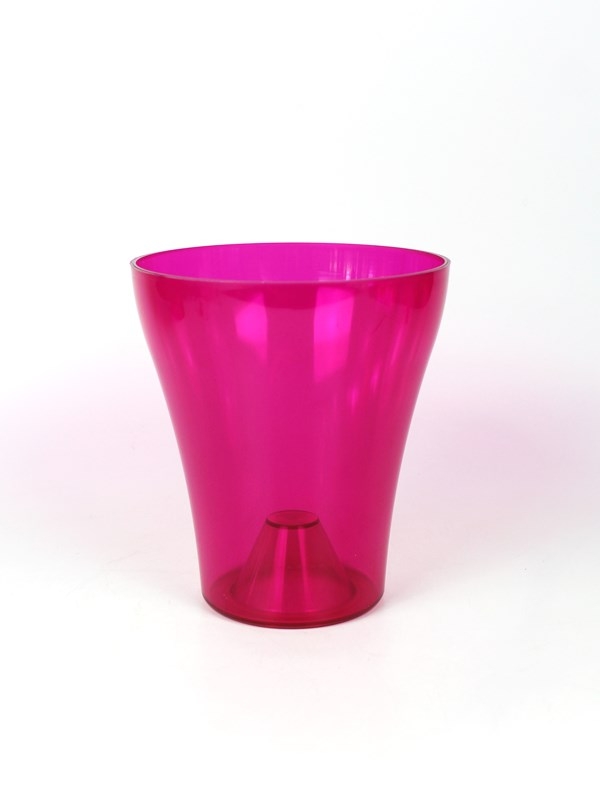 Az orchideák igényeinek megfelelően kialakított ,kecsesen ívelt rózsaszín műanyag orchidea kaspó.