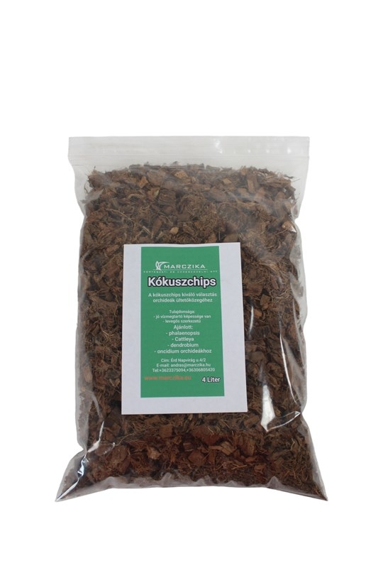A kókuszchips kiváló választás orchideák ültetőközegéhez. Jó vízmegtartó képessége van.Levegős szerkezet. Használat előtt áztassuk be hogy jól megszívja magát nedvességgel. Önmagában is használható ,de gyakran keverik más anyagokkal , pl .perlit, fenyőkéreg vagy sphagnum moha. Ajánlott phalaenopsis, cattleya , dendrobium , oncidium  orchideákhoz.